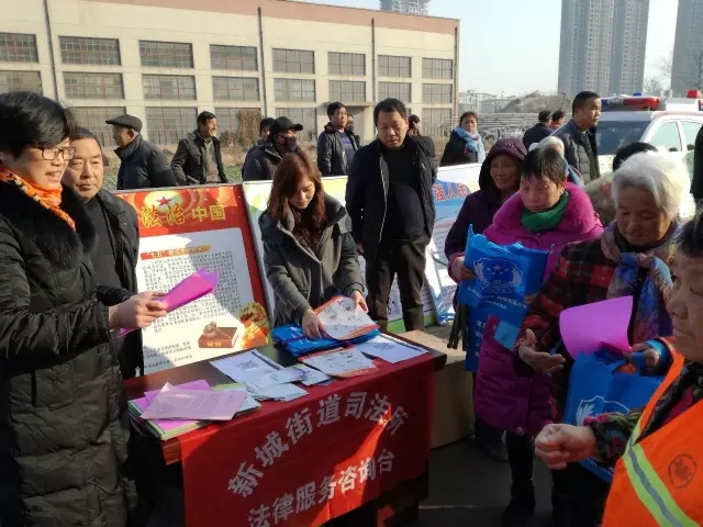 2月9日上午,新城街道在新落成的办公大楼前举行了“新城街道第十一届民间文化艺术节”。新城司法所以这次文化艺术节为契机,通过精心准备,周密部署,联合信访、综治、计生、食药、安监、社保等部门在艺术节上进行了法律宣传,营造浓厚的学法氛围。在民间艺术节活动中以设立咨询台、悬挂条幅、宣传版面、发放宣传品,并以群众喜闻乐见的秧歌、盘鼓、武术、舞蹈等形式广泛展开。活动共设立咨询台5个,悬挂条幅 11条,展板35块,发放宣传读本、彩页2000份,无纺袋、果皮刀、抽纸等宣传品1000多个,并在活动现场解答群众提出的劳务纠纷、二孩生育政策、食品安全等法律咨询33人次。 通过此次民间艺术节,即丰富了人民群众的文化生活,又使广大群众在自娱自乐中学习到了法律知识,进一步提高了辖区群众的法律意识,增强了广大干部职工和人民群众学法、守法、用法的法治观念,从而推动全社会形成尊重和维护社会主义法律权威的良好风尚。