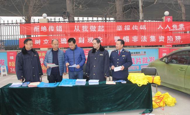 为做好春节期间打击传销工作,坚决防止传销活动出现,1月18日,惠济区工商质监局在中原眼镜城开展了打击传销宣传活动。此次活动由副局长赵长松带队,监管科、刘寨所同志共同参与,立足工商质监部门职能,通过曝光典型案件、摆放展板、发放宣传资料、悬挂标语横幅、现场咨询解答等多种方式,引导群众增强防范传销、抵制传销的认识和能力。