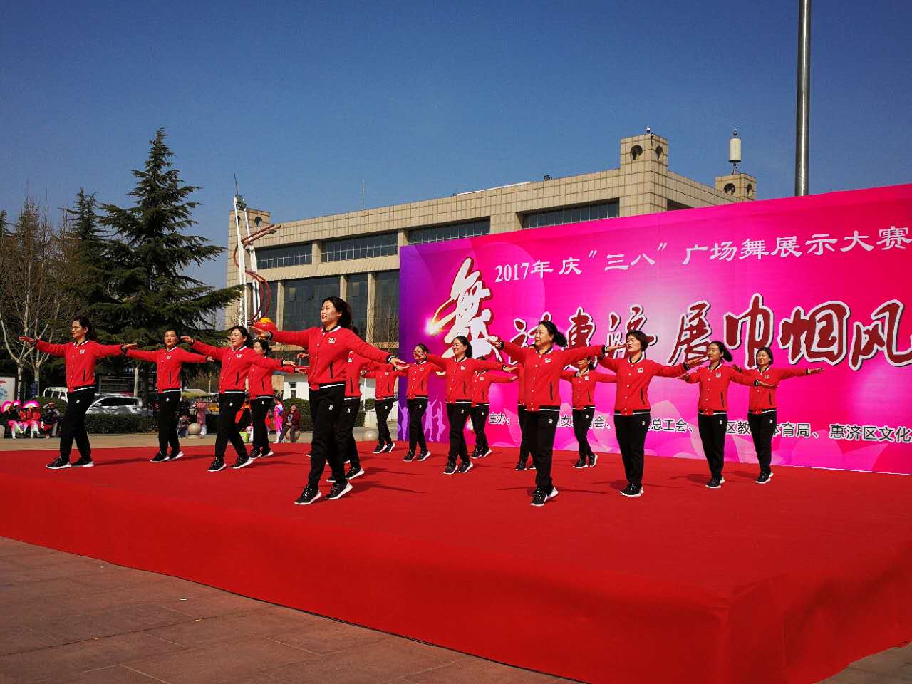 红颜宛转舞乐间,绿意盎然展新颜。3月3日上午,踏着一曲奔放的《我和草原一起来唱歌》的动感节奏,惠济区工商质监局的20位女同志在区大河广场给大家呈现了一支充满生机与活力的广场舞。这20位女同志平均年龄43岁,在不耽误工作的情况下,不怕苦不怕累积极学习训练,以实际行动展示了巾帼不让须眉的风采,及健康、文明、积极向上的精神风貌。