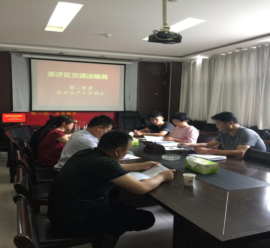 6月26日,惠济区交通运输局召开第二季度安全生产工作例会,会议由各部门负责人及安全管理人员参会,会议首先传达了近期省、市安全生产工作会议和上级文件精神;其次由局属各相关部门对安全生产形势进行了分析,阐明了下步安全工作打算;最后由分管的安全的领导对上半年的安全生产工作进行了总结。此次安全生产工作再次提升了辖区安全监管人员的安全意识,明确了下步工作目标。